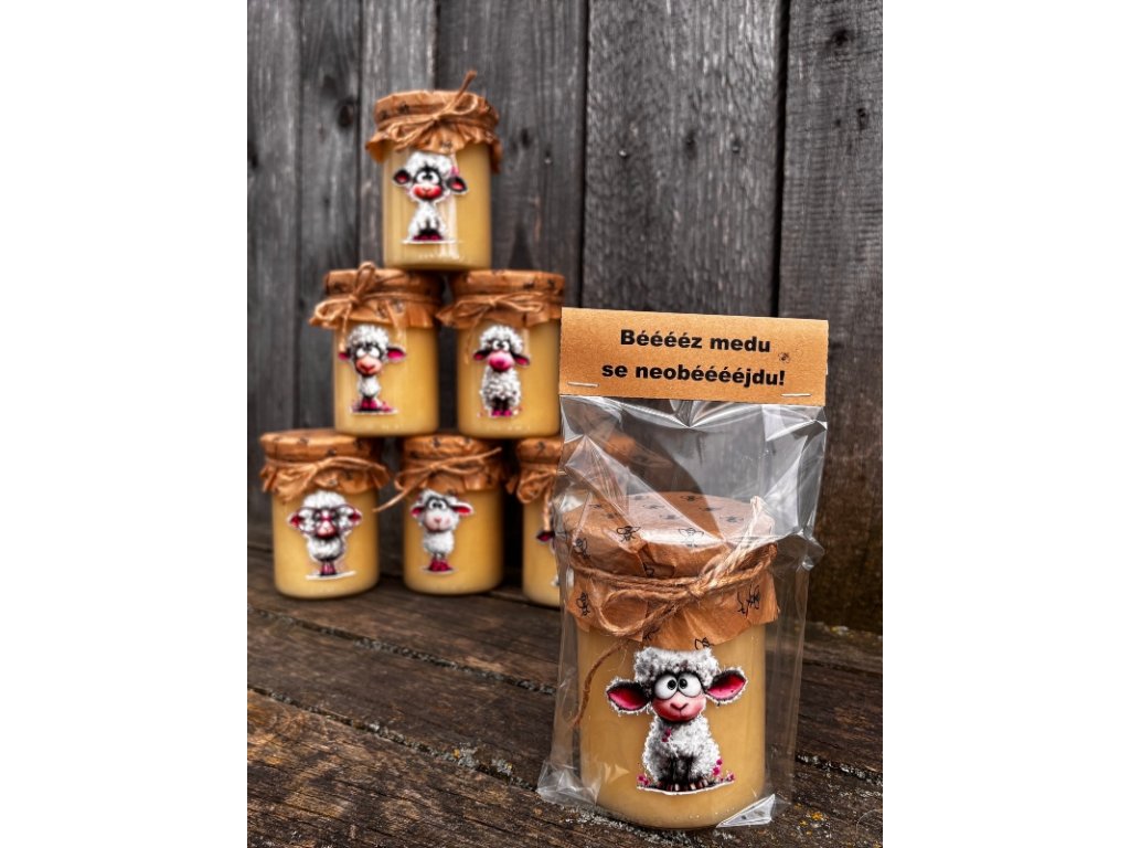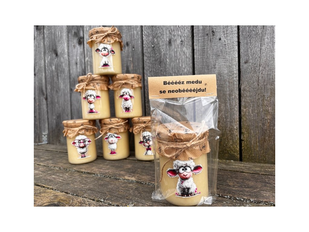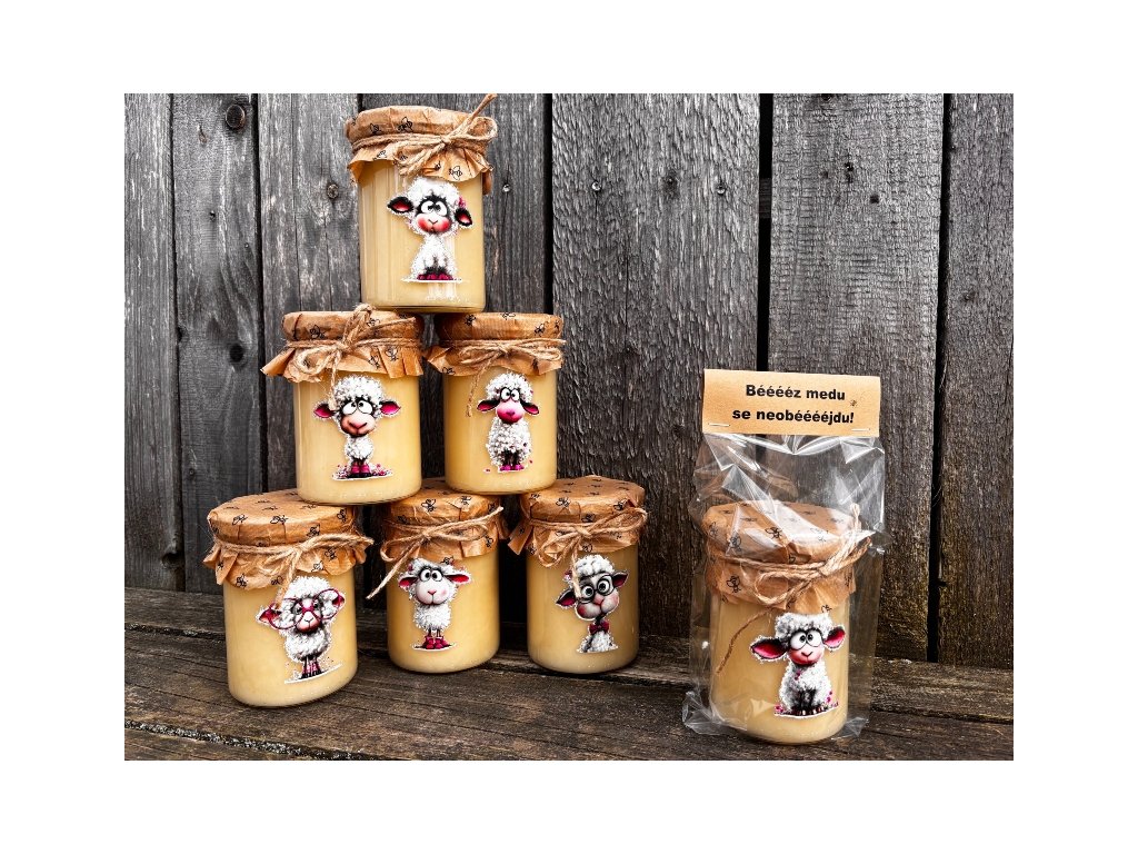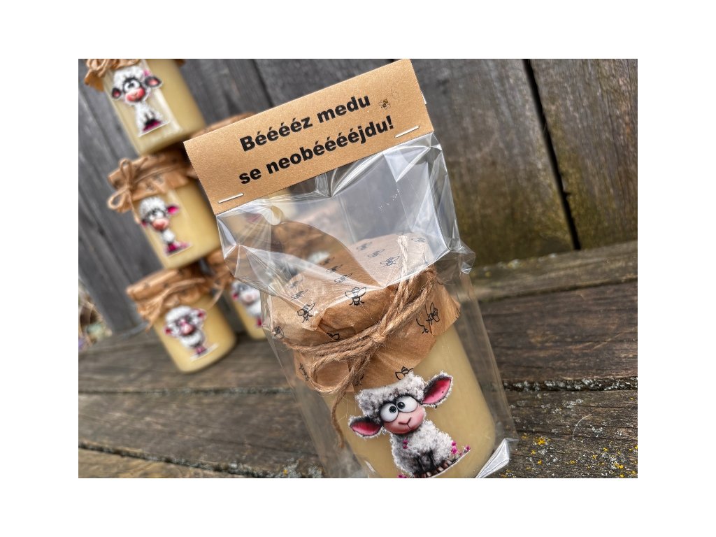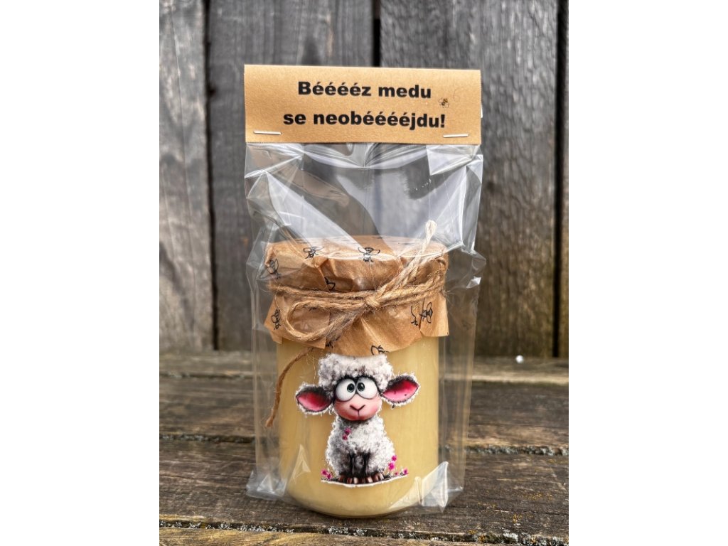 Originální, vtipný a zdravý medový dárek - pro všechny co mají rádi chuť čistého medu bez příchutí. Sklenice je naplněna 500g květového medu a přizdobena veselým obrázkem ovečky. Jednoduchý, ale přitom velice efektní dárek pro každého. Vše je vloženo do celofánového sáčku a opatřeno textem. Vtipný dárek, který vyloudí úsměv u každého obdarovaného. Buďte originální a darujte zdraví i úsměv:-)