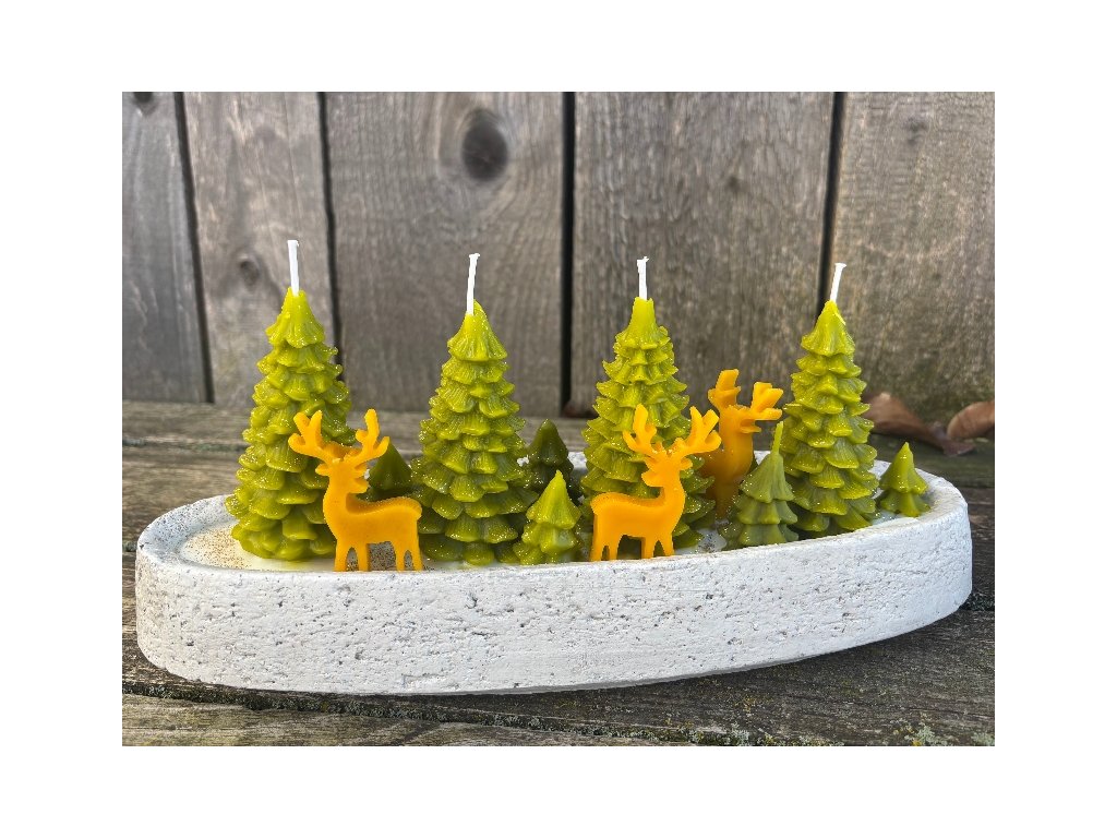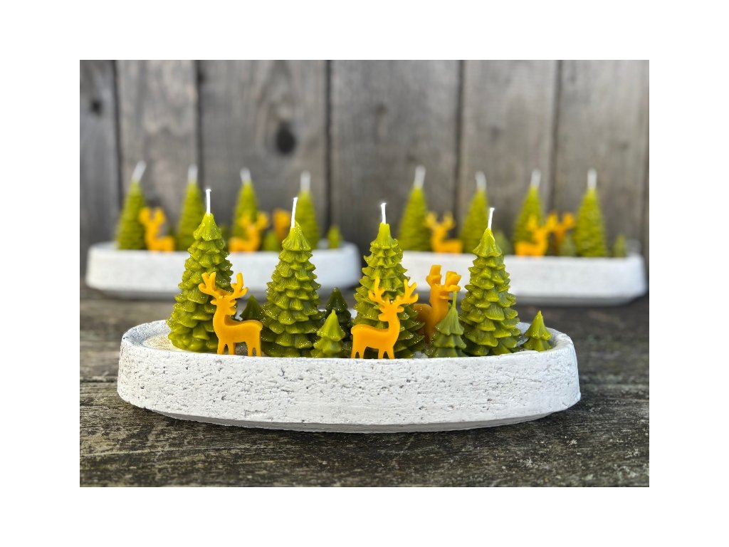 Krásný vymazlený vánoční svícen odlitý z kombinací včelího a sójového vosku. Nádoba svícnu je betonová, ve spodní části opatřená podložkami, aby se zabránilo poškrábání povrchu, na který bude svícen umístěn. Překrásný kousek, který vám vytvoří tu pravou vánoční atmosféru!. Pokud si svícen zapálíte, vydrží vám hořet celých 26 hodin, přičemž všechen vosk krásně vyhoří a nádobu lze opětovně použít na jiné dekorace. Včelí svíčky při hoření uvolňují příjemnou medovou vůni, která připomíná včelí úl. Když ale nebudete mít to srdce nechat ho shořet, získáte tak nádhernou, kouzelnou, voňavou a originální dekoraci na mnoho let:-). Dodáváno v celofánovém sáčku s potiskem vloček, takže lze použít i jako dárek.
