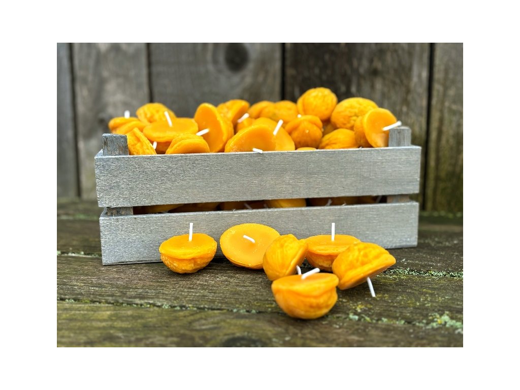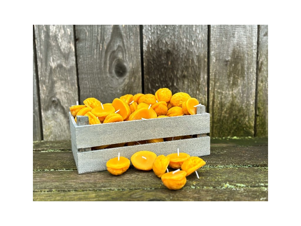 Krásná plovoucí svíčka odlitá ze 100% včelího vosku v přírodní barvě ve tvaru vlašského oříšku. Velikost svíčky je 4,5 x 3,5 cm.